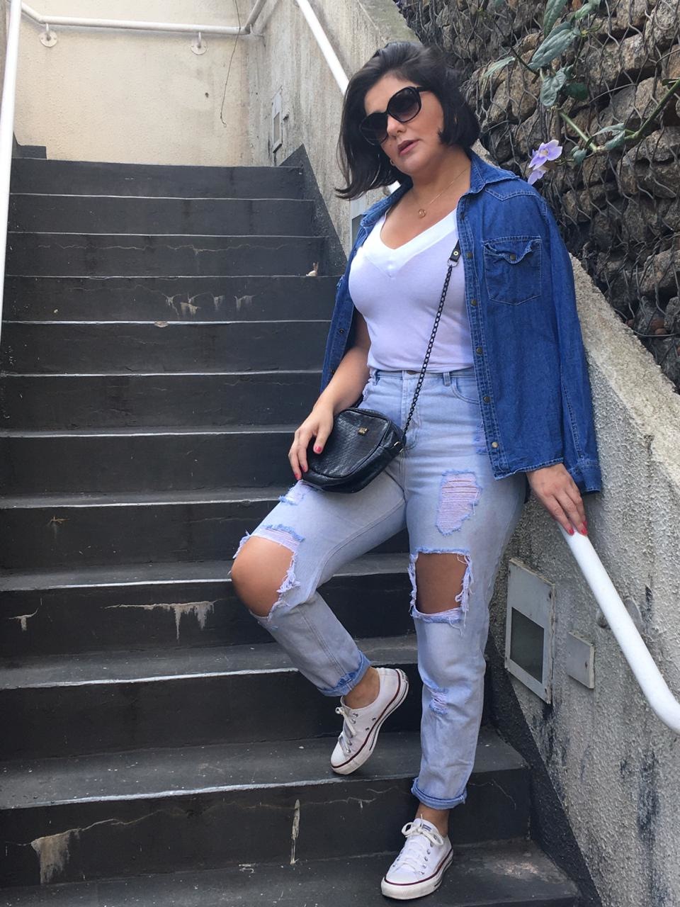 Sabe aquele look casual que você precisa deixar mais estiloso? Bom essa foi a ideia da Andréa Reis que investiu em óculos estilosos e terceira peças (blusa e a camisa xadrez), percebeu como simples itens podem transformar o look?