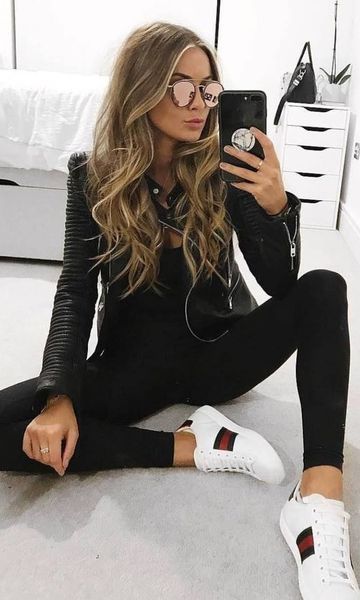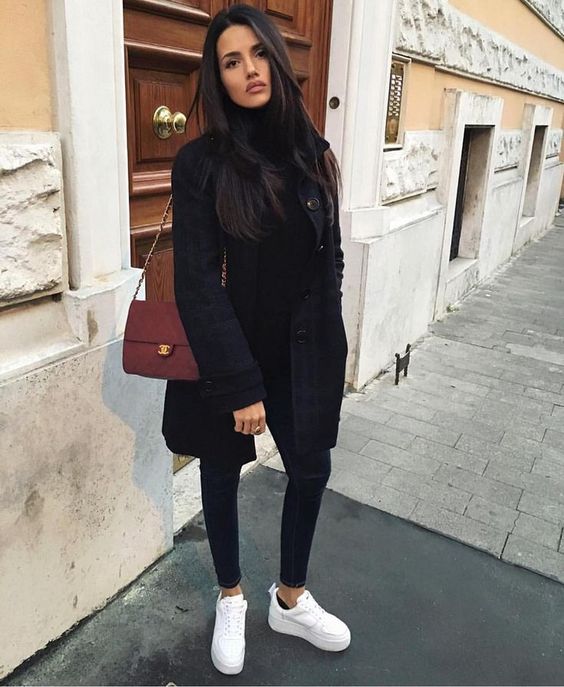 Mais um look básico, com apenas um coque, uma bolsa e um tênis branco o look já ficou com cara de arrumado e com cara de rica.